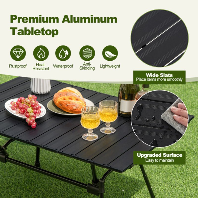 The aluminum tabletop is anti-skidding, lightweight, durable, and sturdy enough.