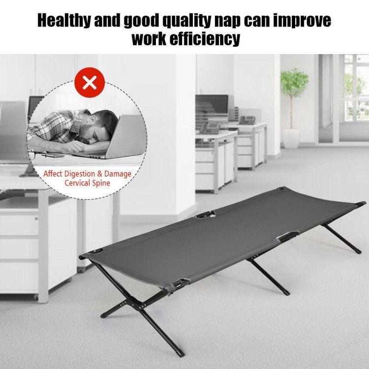 This portable sleeping cot features a sturdy iron frame with X-shaped legs; which can hold up to 300 lbs. With compact folding size and portable carry bag with handle; the military camp bed is easy to fit into your camping trunks and save large space. Also; this cot bed is easy to set up and fold down into a compact size for ease of use when camping; hiking; fishing or traveling. Besides; you can use our camp bed for a nap in the office.